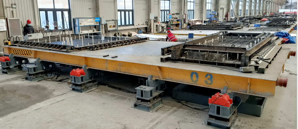 該振動臺可集成在平模流水生產線應用,也可在簡易生產線單機使用,操作方便,可高效振動密實各類混凝土構件,振動噪音低,構件密實度高、質量好。