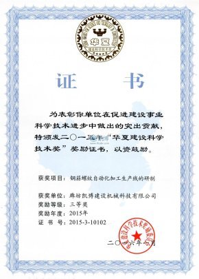 華夏建設科學技術獎 鋼筋螺紋自動化加工生產線的研制